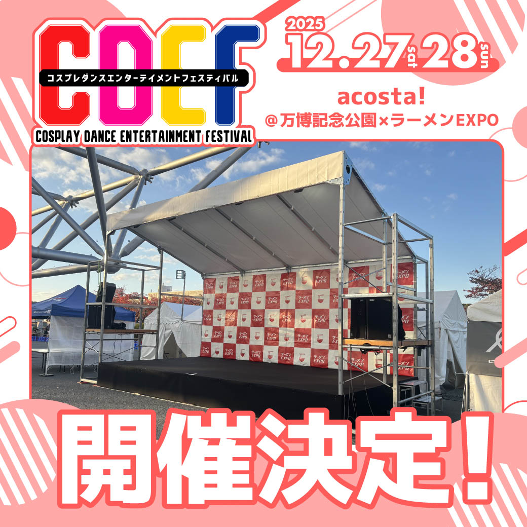 - ステージ開催時間は変更となる可能性がございますので、acosta!イベント中どの時間でも出演可能な方のみご応募ください。